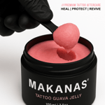 Tattoo Guava Jelly is a premium, all-natural skincare formula designed to support the full lifecycle of tattoo care — from the moment ink touches skin, through healing, and long afterward. Rooted in Pacific Island traditions, this jelly is crafted with botanicals and a petroleum-free base to help heal, protect, and revive tattoos. It’s a complete tattoo healing system in a jar — and a daily skin enhancer even for non-inked skin.